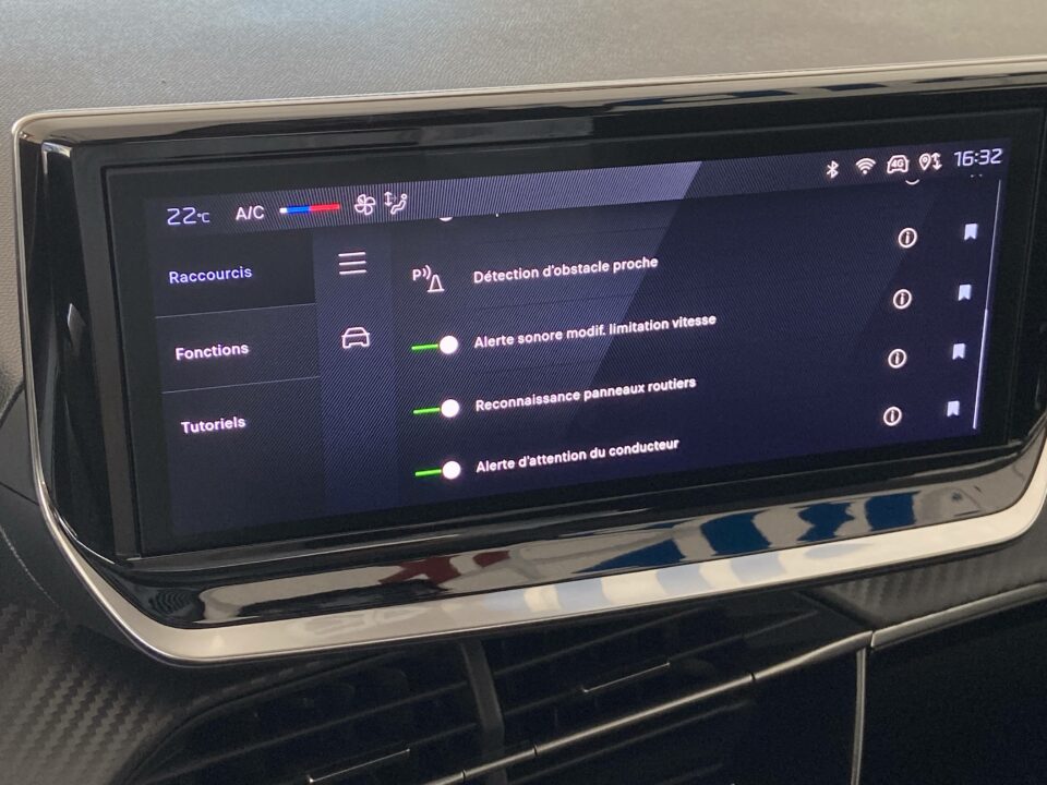 | Peugeot i-Cockpit avec combinĂ© tĂȘte haute analogique et matrice couleur 3,5 |